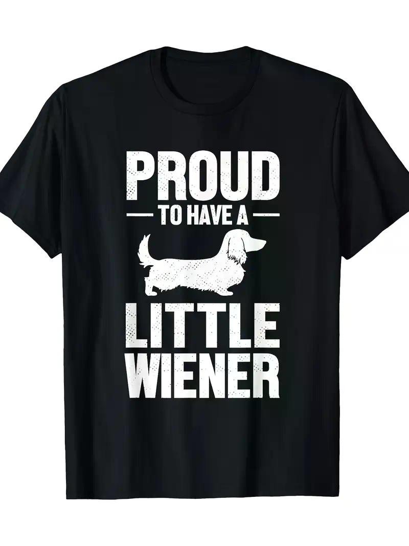 Home > Proud to Have a Little Wiener" Men's T-Shirt - 100% Cotton, Black with White Dachshund Graphic, Casual Patriotic Tee for Dog Lovers, Machine Washable
