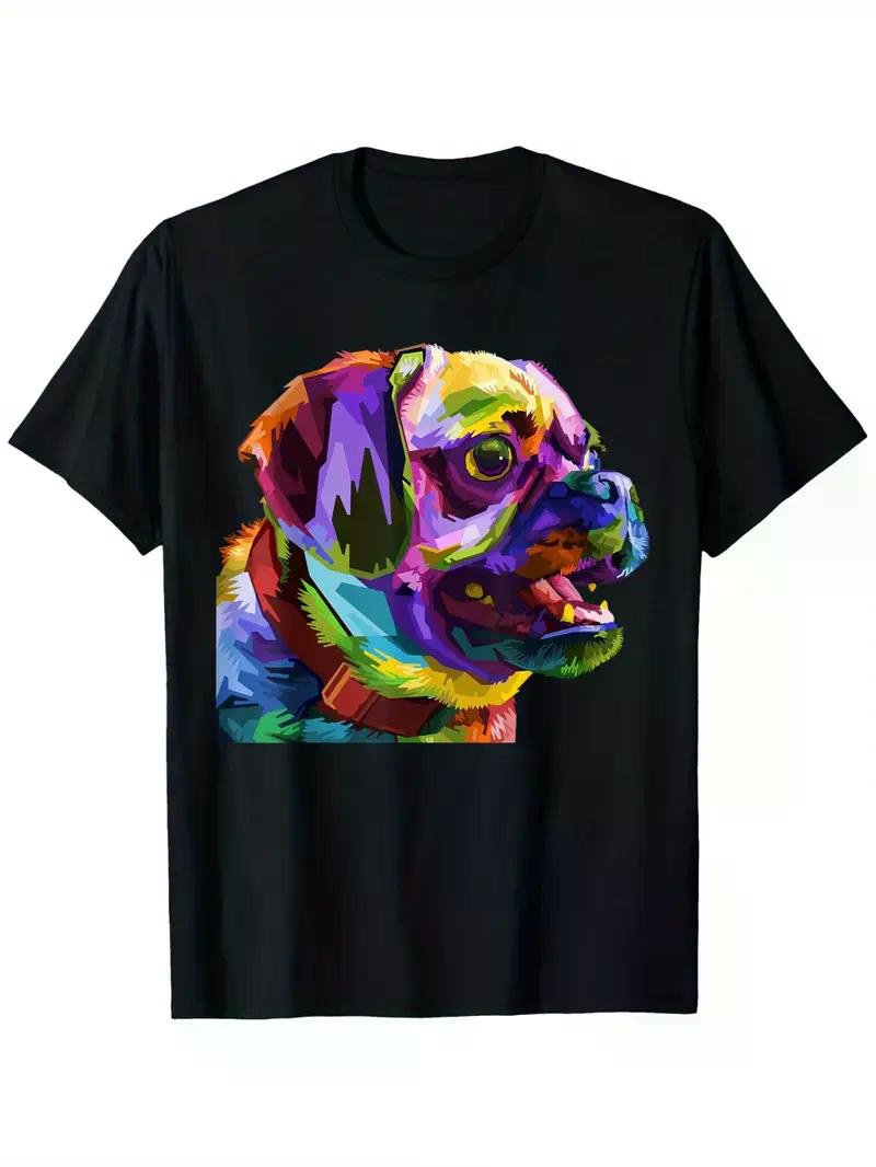 Colorful Pug Pop Art Portrait T-Shirt for Dog Lovers - 100% Cotton, Breathable & Durable, Black Short Sleeve Tee