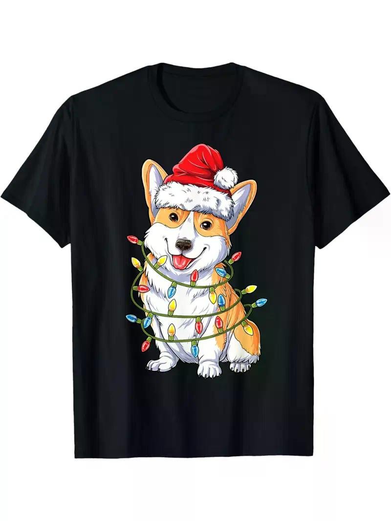 Corgi Santa Christmas Tree Lights Xmas Boys Men Corgmas Dog T-Shirt