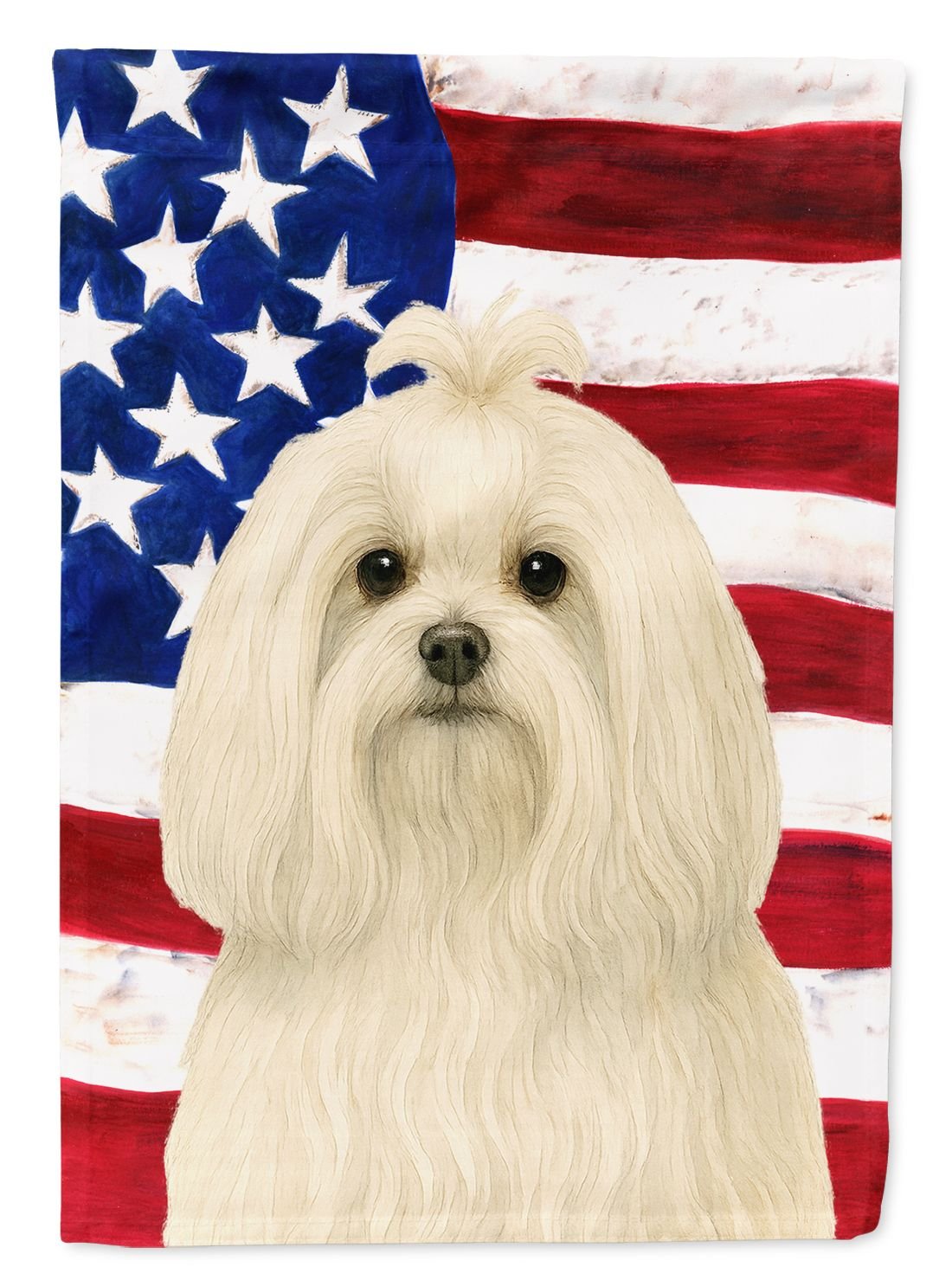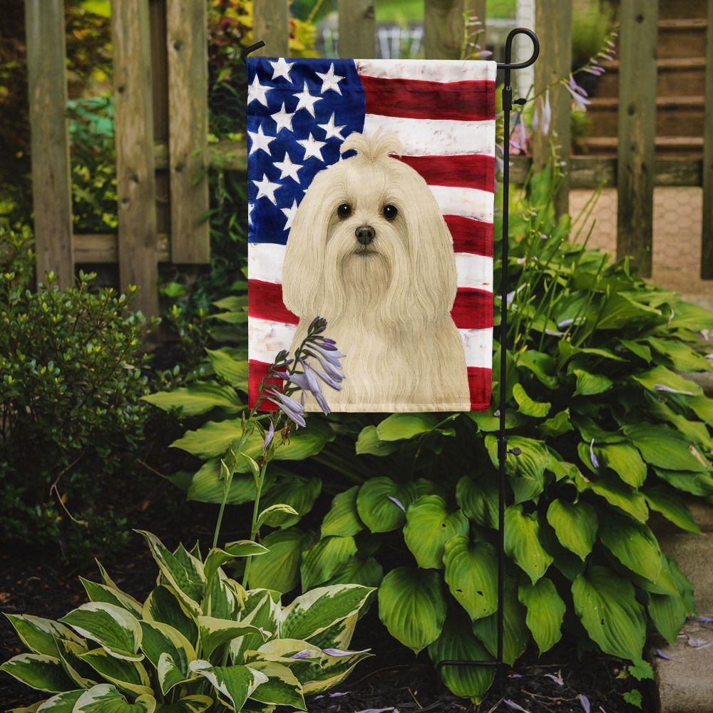 Garden Flag featuring breed specific Maltese artwork. Enhance the beauty of your garden, patio, or yard with Caroline's Treasures Decorative Garden Flag, proudly made in the USA. Crafted from two pieces of thick, double-sided polyester fabric, this 2-ply garden flag is designed to withstand various weather conditions, making it water-resistant and weatherproof. Featuring correctly readable words on both sides, this garden flag offers a delightful visual experience from any angle. With its heavier weight, it stands out among other garden flags, ensuring stability and durability even in wind, rain, and snow. Measuring approximately 11 1/4 inches by 15 1/2 inches, this flag allows you to personalize your outdoor decor. It comes with a 1 1/2-inch sleeve sewn in, allowing easy attachment to any standard garden flag stand or garden size porch hanger (sold separately). Make a statement in your outdoor space with Caroline's Treasures Decorative Garden Flag, a vibrant and high-quality flag that adds color and personality to your surroundings. Proudly made in the USA, it's a symbol of quality craftsmanship and attention to detail.