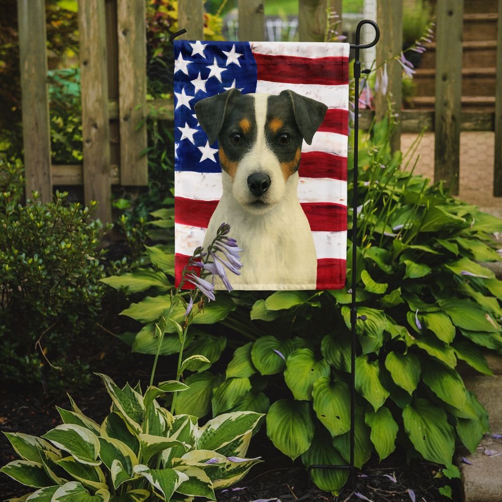 Garden Flag featuring breed specific Jack Russell Terrier artwork. Enhance the beauty of your garden, patio, or yard with Caroline's Treasures Decorative Garden Flag, proudly made in the USA. Crafted from two pieces of thick, double-sided polyester fabric, this 2-ply garden flag is designed to withstand various weather conditions, making it water-resistant and weatherproof. Featuring correctly readable words on both sides, this garden flag offers a delightful visual experience from any angle. With its heavier weight, it stands out among other garden flags, ensuring stability and durability even in wind, rain, and snow. Measuring approximately 11 1/4 inches by 15 1/2 inches, this flag allows you to personalize your outdoor decor. It comes with a 1 1/2-inch sleeve sewn in, allowing easy attachment to any standard garden flag stand or garden size porch hanger (sold separately). Make a statement in your outdoor space with Caroline's Treasures Decorative Garden Flag, a vibrant and high-quality flag that adds color and personality to your surroundings. Proudly made in the USA, it's a symbol of quality craftsmanship and attention to detail.