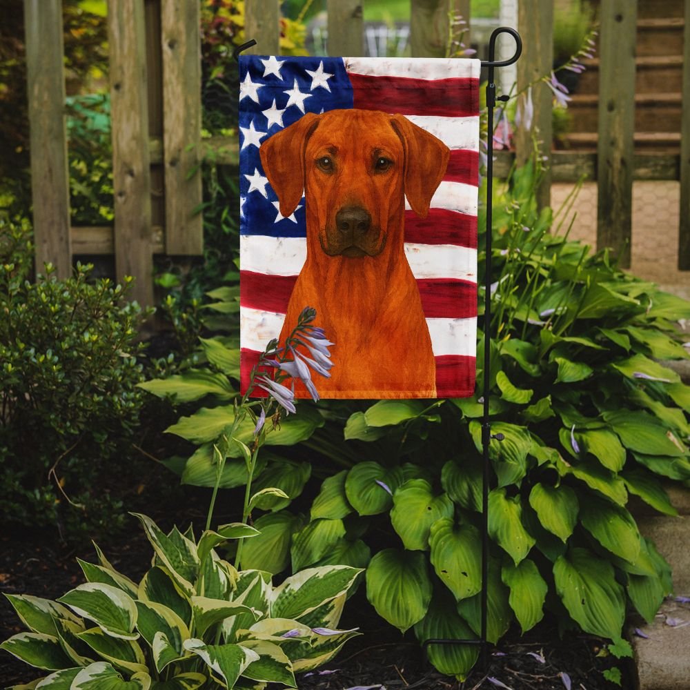 Garden Flag featuring breed specific Rhodesian Ridgeback artwork. Enhance the beauty of your garden, patio, or yard with Caroline's Treasures Decorative Garden Flag, proudly made in the USA. Crafted from two pieces of thick, double-sided polyester fabric, this 2-ply garden flag is designed to withstand various weather conditions, making it water-resistant and weatherproof. Featuring correctly readable words on both sides, this garden flag offers a delightful visual experience from any angle. With its heavier weight, it stands out among other garden flags, ensuring stability and durability even in wind, rain, and snow. Measuring approximately 11 1/4 inches by 15 1/2 inches, this flag allows you to personalize your outdoor decor. It comes with a 1 1/2-inch sleeve sewn in, allowing easy attachment to any standard garden flag stand or garden size porch hanger (sold separately). Make a statement in your outdoor space with Caroline's Treasures Decorative Garden Flag, a vibrant and high-quality flag that adds color and personality to your surroundings. Proudly made in the USA, it's a symbol of quality craftsmanship and attention to detail.