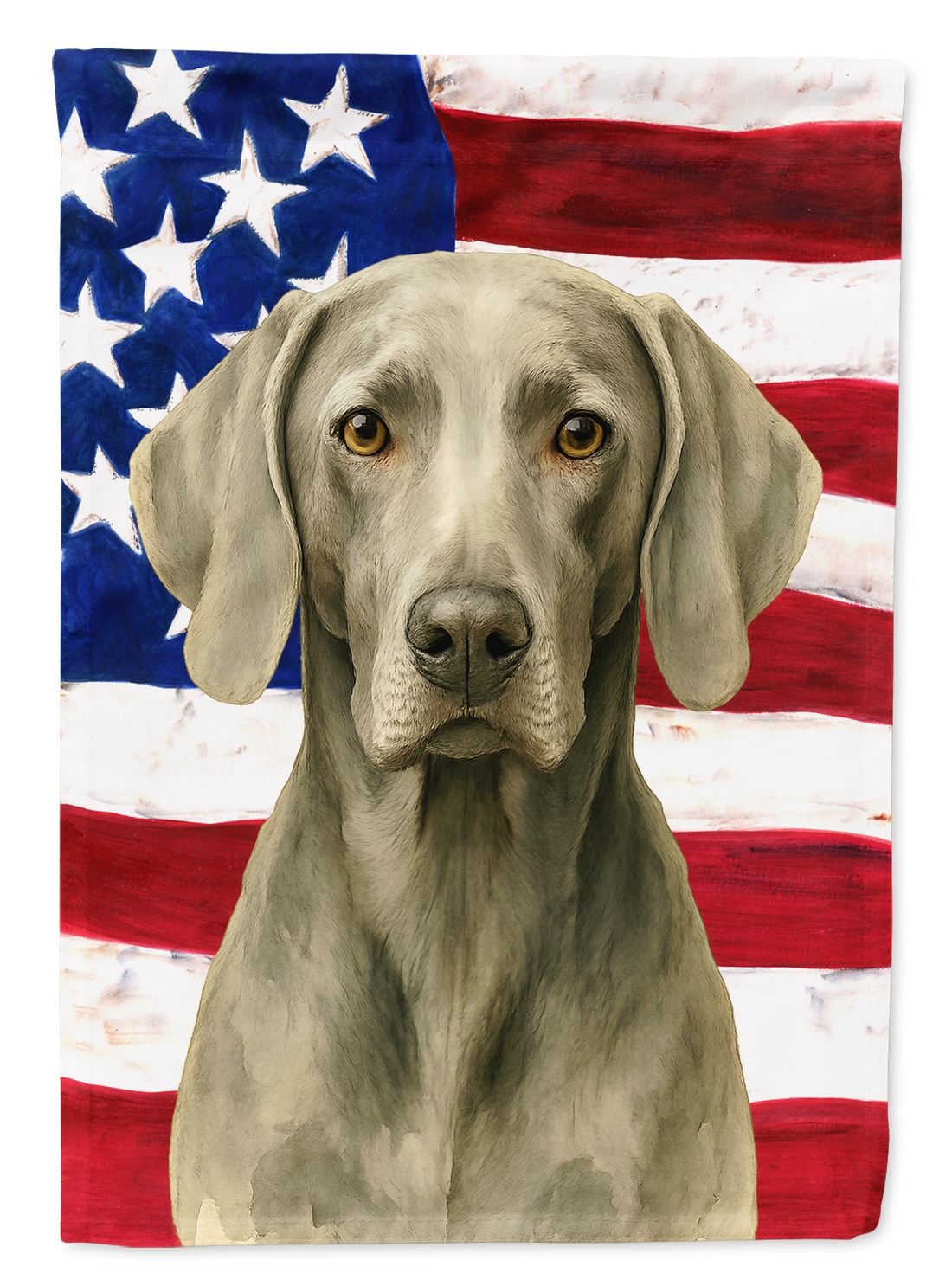 Garden Flag featuring breed specific Weimaraner artwork. Enhance the beauty of your garden, patio, or yard with Caroline's Treasures Decorative Garden Flag, proudly made in the USA. Crafted from two pieces of thick, double-sided polyester fabric, this 2-ply garden flag is designed to withstand various weather conditions, making it water-resistant and weatherproof. Featuring correctly readable words on both sides, this garden flag offers a delightful visual experience from any angle. With its heavier weight, it stands out among other garden flags, ensuring stability and durability even in wind, rain, and snow. Measuring approximately 11 1/4 inches by 15 1/2 inches, this flag allows you to personalize your outdoor decor. It comes with a 1 1/2-inch sleeve sewn in, allowing easy attachment to any standard garden flag stand or garden size porch hanger (sold separately). Make a statement in your outdoor space with Caroline's Treasures Decorative Garden Flag, a vibrant and high-quality flag that adds color and personality to your surroundings. Proudly made in the USA, it's a symbol of quality craftsmanship and attention to detail.