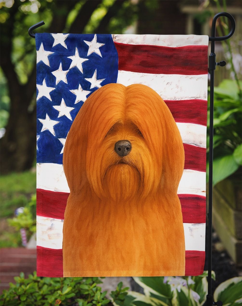 Garden Flag featuring breed specific Lhasa Apso artwork. Enhance the beauty of your garden, patio, or yard with Caroline's Treasures Decorative Garden Flag, proudly made in the USA. Crafted from two pieces of thick, double-sided polyester fabric, this 2-ply garden flag is designed to withstand various weather conditions, making it water-resistant and weatherproof. Featuring correctly readable words on both sides, this garden flag offers a delightful visual experience from any angle. With its heavier weight, it stands out among other garden flags, ensuring stability and durability even in wind, rain, and snow. Measuring approximately 11 1/4 inches by 15 1/2 inches, this flag allows you to personalize your outdoor decor. It comes with a 1 1/2-inch sleeve sewn in, allowing easy attachment to any standard garden flag stand or garden size porch hanger (sold separately). Make a statement in your outdoor space with Caroline's Treasures Decorative Garden Flag, a vibrant and high-quality flag that adds color and personality to your surroundings. Proudly made in the USA, it's a symbol of quality craftsmanship and attention to detail.