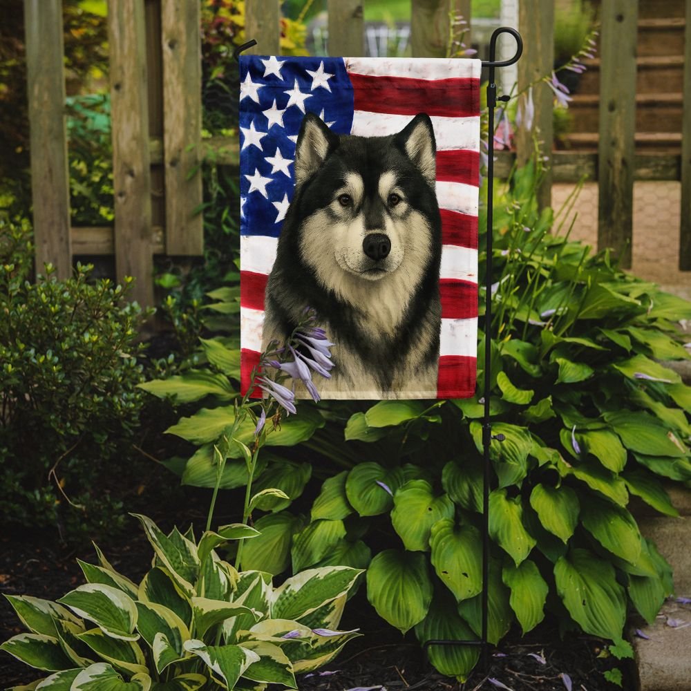 Garden Flag featuring breed specific Alaskan Malamute artwork. Enhance the beauty of your garden, patio, or yard with Caroline's Treasures Decorative Garden Flag, proudly made in the USA. Crafted from two pieces of thick, double-sided polyester fabric, this 2-ply garden flag is designed to withstand various weather conditions, making it water-resistant and weatherproof. Featuring correctly readable words on both sides, this garden flag offers a delightful visual experience from any angle. With its heavier weight, it stands out among other garden flags, ensuring stability and durability even in wind, rain, and snow. Measuring approximately 11 1/4 inches by 15 1/2 inches, this flag allows you to personalize your outdoor decor. It comes with a 1 1/2-inch sleeve sewn in, allowing easy attachment to any standard garden flag stand or garden size porch hanger (sold separately). Make a statement in your outdoor space with Caroline's Treasures Decorative Garden Flag, a vibrant and high-quality flag that adds color and personality to your surroundings. Proudly made in the USA, it's a symbol of quality craftsmanship and attention to detail.