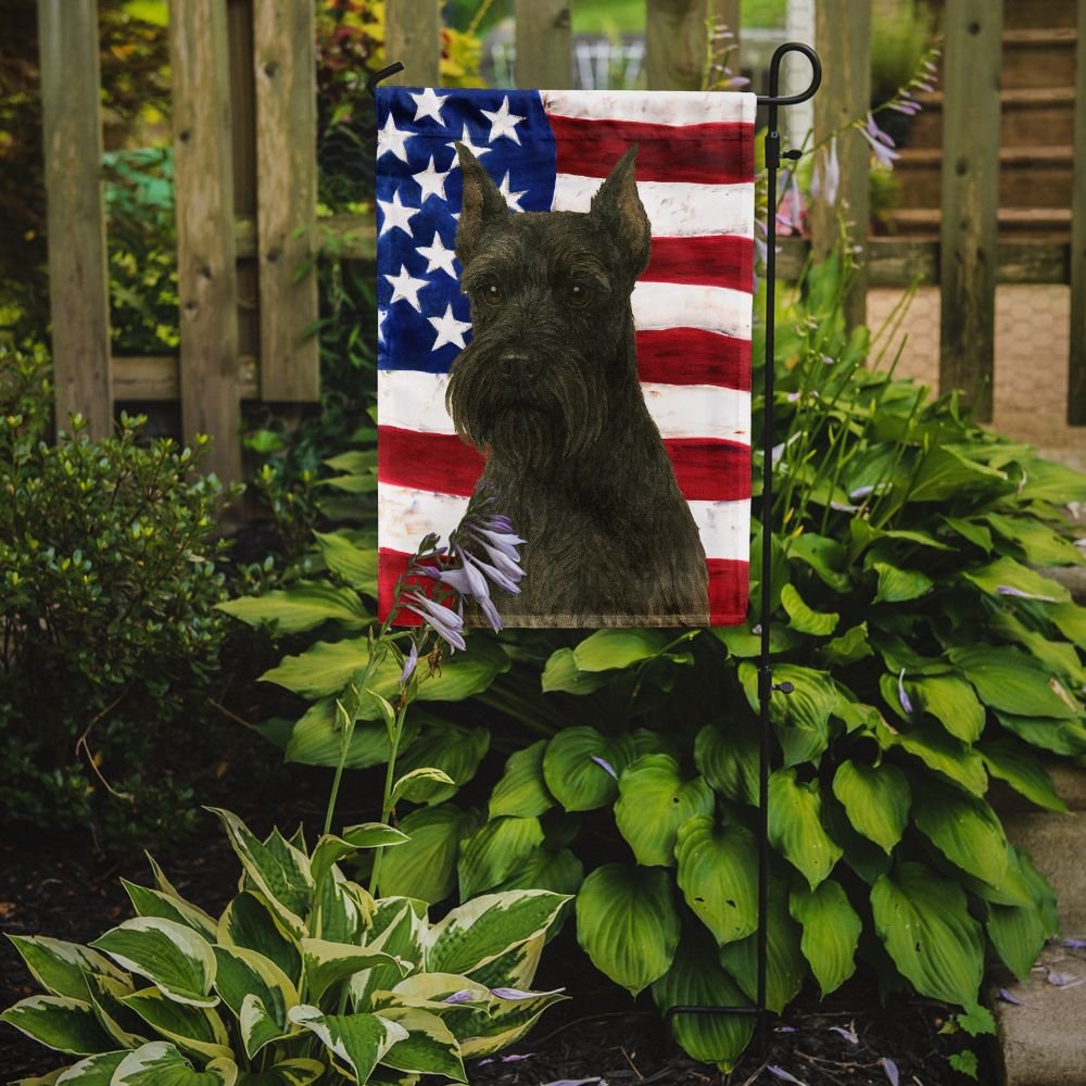 Garden Flag featuring breed specific Schnauzer artwork. Enhance the beauty of your garden, patio, or yard with Caroline's Treasures Decorative Garden Flag, proudly made in the USA. Crafted from two pieces of thick, double-sided polyester fabric, this 2-ply garden flag is designed to withstand various weather conditions, making it water-resistant and weatherproof. Featuring correctly readable words on both sides, this garden flag offers a delightful visual experience from any angle. With its heavier weight, it stands out among other garden flags, ensuring stability and durability even in wind, rain, and snow. Measuring approximately 11 1/4 inches by 15 1/2 inches, this flag allows you to personalize your outdoor decor. It comes with a 1 1/2-inch sleeve sewn in, allowing easy attachment to any standard garden flag stand or garden size porch hanger (sold separately). Make a statement in your outdoor space with Caroline's Treasures Decorative Garden Flag, a vibrant and high-quality flag that adds color and personality to your surroundings. Proudly made in the USA, it's a symbol of quality craftsmanship and attention to detail.
