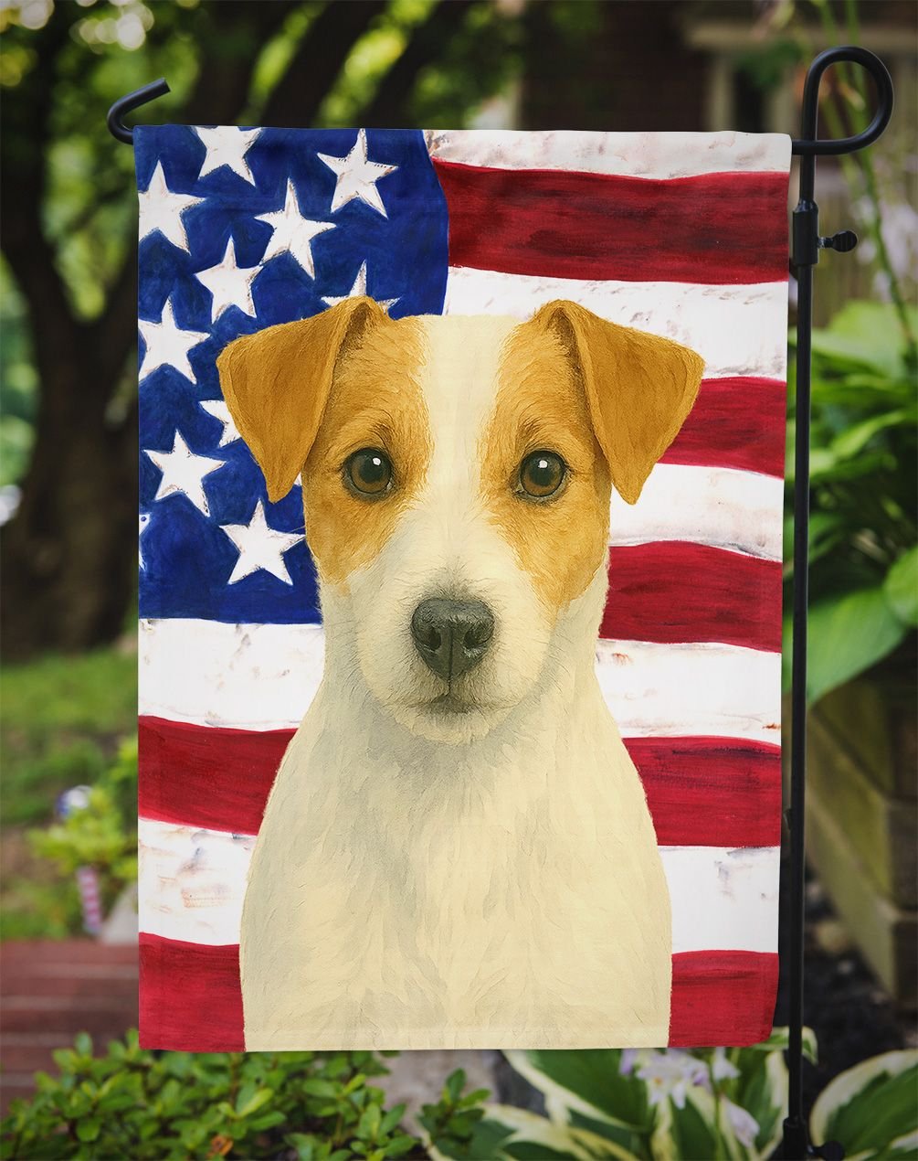 Garden Flag featuring breed specific Jack Russell Terrier artwork. Enhance the beauty of your garden, patio, or yard with Caroline's Treasures Decorative Garden Flag, proudly made in the USA. Crafted from two pieces of thick, double-sided polyester fabric, this 2-ply garden flag is designed to withstand various weather conditions, making it water-resistant and weatherproof. Featuring correctly readable words on both sides, this garden flag offers a delightful visual experience from any angle. With its heavier weight, it stands out among other garden flags, ensuring stability and durability even in wind, rain, and snow. Measuring approximately 11 1/4 inches by 15 1/2 inches, this flag allows you to personalize your outdoor decor. It comes with a 1 1/2-inch sleeve sewn in, allowing easy attachment to any standard garden flag stand or garden size porch hanger (sold separately). Make a statement in your outdoor space with Caroline's Treasures Decorative Garden Flag, a vibrant and high-quality flag that adds color and personality to your surroundings. Proudly made in the USA, it's a symbol of quality craftsmanship and attention to detail.