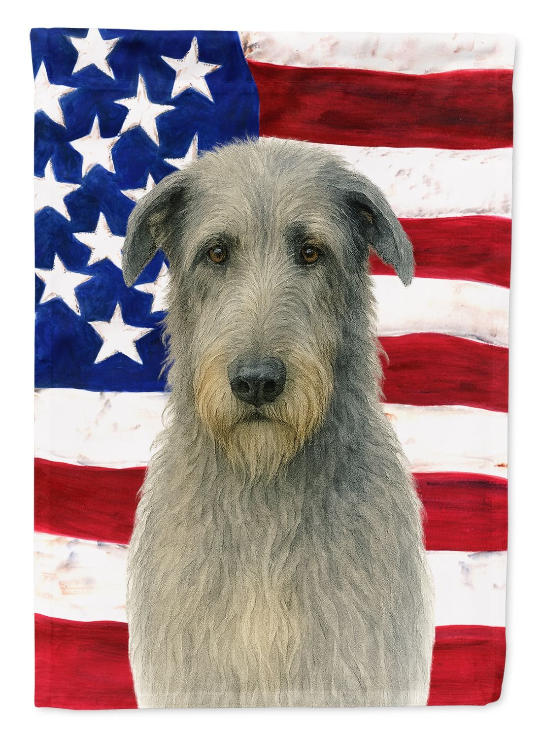 Garden Flag featuring breed specific Irish Wolfhound artwork. Enhance the beauty of your garden, patio, or yard with Caroline's Treasures Decorative Garden Flag, proudly made in the USA. Crafted from two pieces of thick, double-sided polyester fabric, this 2-ply garden flag is designed to withstand various weather conditions, making it water-resistant and weatherproof. Featuring correctly readable words on both sides, this garden flag offers a delightful visual experience from any angle. With its heavier weight, it stands out among other garden flags, ensuring stability and durability even in wind, rain, and snow. Measuring approximately 11 1/4 inches by 15 1/2 inches, this flag allows you to personalize your outdoor decor. It comes with a 1 1/2-inch sleeve sewn in, allowing easy attachment to any standard garden flag stand or garden size porch hanger (sold separately). Make a statement in your outdoor space with Caroline's Treasures Decorative Garden Flag, a vibrant and high-quality flag that adds color and personality to your surroundings. Proudly made in the USA, it's a symbol of quality craftsmanship and attention to detail.