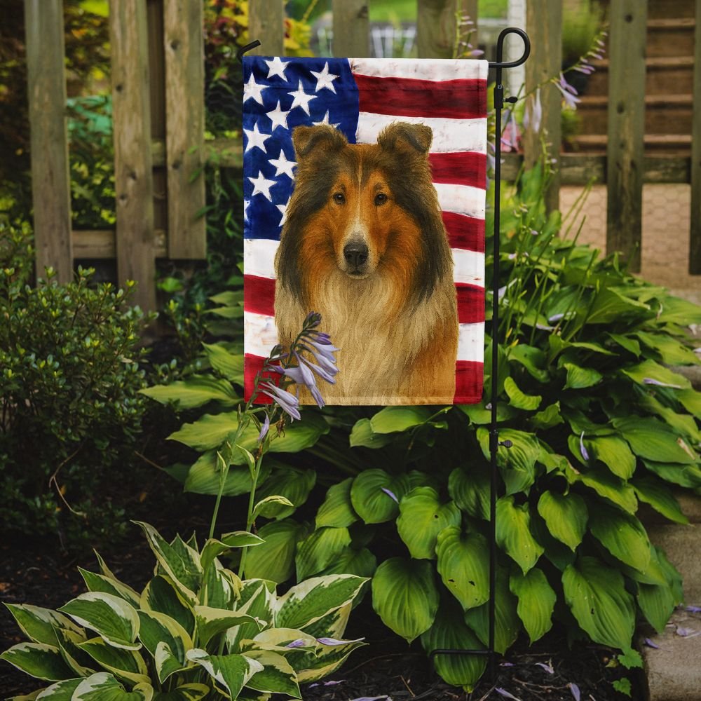 Garden Flag featuring breed specific Collie artwork. Enhance the beauty of your garden, patio, or yard with Caroline's Treasures Decorative Garden Flag, proudly made in the USA. Crafted from two pieces of thick, double-sided polyester fabric, this 2-ply garden flag is designed to withstand various weather conditions, making it water-resistant and weatherproof. Featuring correctly readable words on both sides, this garden flag offers a delightful visual experience from any angle. With its heavier weight, it stands out among other garden flags, ensuring stability and durability even in wind, rain, and snow. Measuring approximately 11 1/4 inches by 15 1/2 inches, this flag allows you to personalize your outdoor decor. It comes with a 1 1/2-inch sleeve sewn in, allowing easy attachment to any standard garden flag stand or garden size porch hanger (sold separately). Make a statement in your outdoor space with Caroline's Treasures Decorative Garden Flag, a vibrant and high-quality flag that adds color and personality to your surroundings. Proudly made in the USA, it's a symbol of quality craftsmanship and attention to detail.