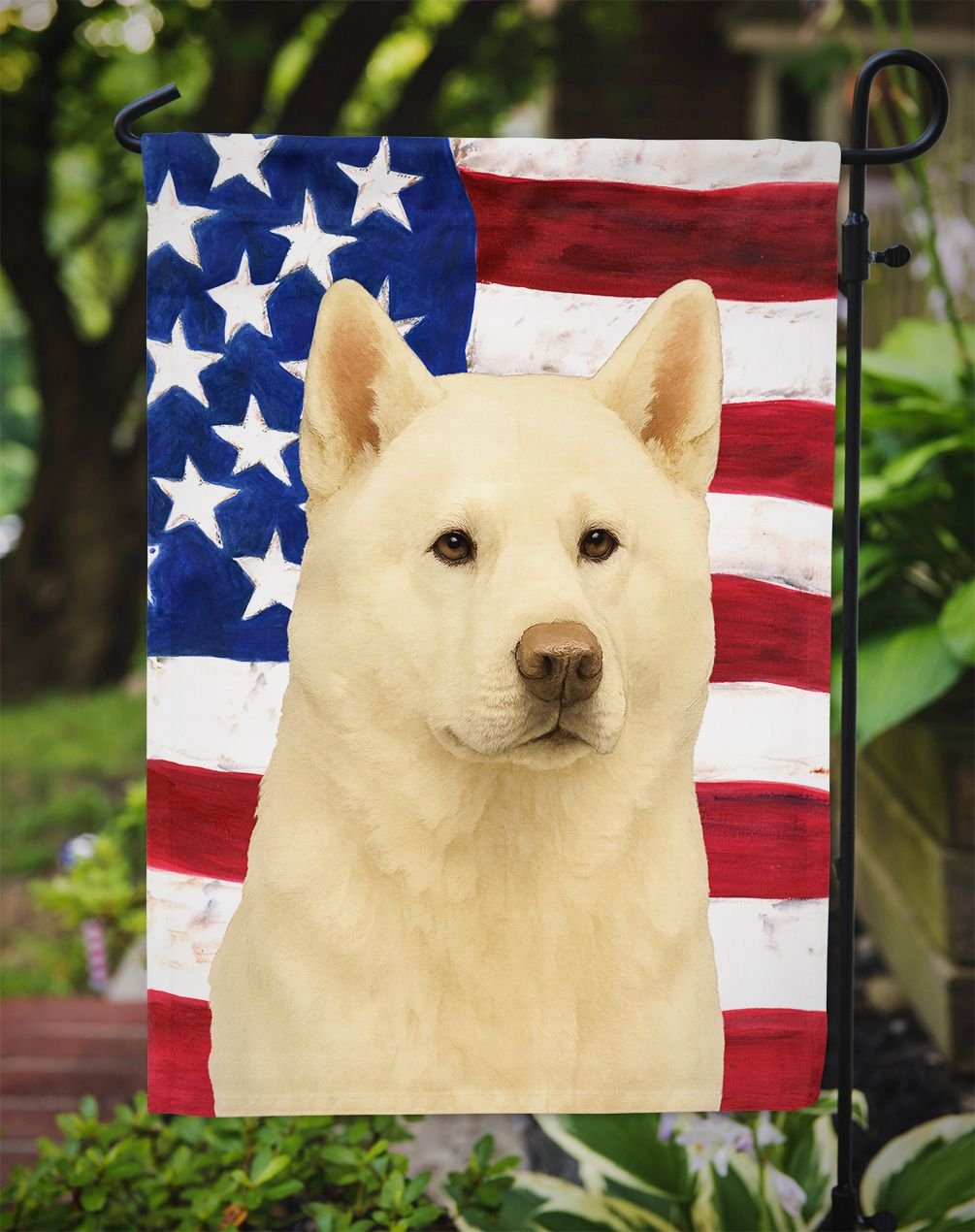 Garden Flag featuring breed specific Akita artwork. Enhance the beauty of your garden, patio, or yard with Caroline's Treasures Decorative Garden Flag, proudly made in the USA. Crafted from two pieces of thick, double-sided polyester fabric, this 2-ply garden flag is designed to withstand various weather conditions, making it water-resistant and weatherproof. Featuring correctly readable words on both sides, this garden flag offers a delightful visual experience from any angle. With its heavier weight, it stands out among other garden flags, ensuring stability and durability even in wind, rain, and snow. Measuring approximately 11 1/4 inches by 15 1/2 inches, this flag allows you to personalize your outdoor decor. It comes with a 1 1/2-inch sleeve sewn in, allowing easy attachment to any standard garden flag stand or garden size porch hanger (sold separately). Make a statement in your outdoor space with Caroline's Treasures Decorative Garden Flag, a vibrant and high-quality flag that adds color and personality to your surroundings. Proudly made in the USA, it's a symbol of quality craftsmanship and attention to detail.