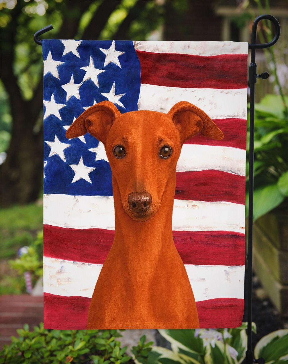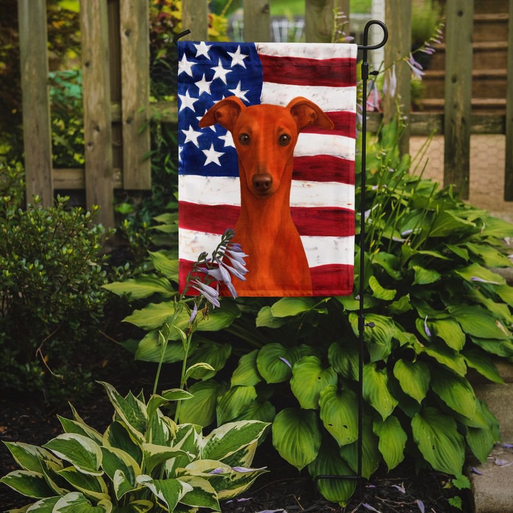 Garden Flag featuring breed specific Italian Greyhound artwork. Enhance the beauty of your garden, patio, or yard with Caroline's Treasures Decorative Garden Flag, proudly made in the USA. Crafted from two pieces of thick, double-sided polyester fabric, this 2-ply garden flag is designed to withstand various weather conditions, making it water-resistant and weatherproof. Featuring correctly readable words on both sides, this garden flag offers a delightful visual experience from any angle. With its heavier weight, it stands out among other garden flags, ensuring stability and durability even in wind, rain, and snow. Measuring approximately 11 1/4 inches by 15 1/2 inches, this flag allows you to personalize your outdoor decor. It comes with a 1 1/2-inch sleeve sewn in, allowing easy attachment to any standard garden flag stand or garden size porch hanger (sold separately). Make a statement in your outdoor space with Caroline's Treasures Decorative Garden Flag, a vibrant and high-quality flag that adds color and personality to your surroundings. Proudly made in the USA, it's a symbol of quality craftsmanship and attention to detail.