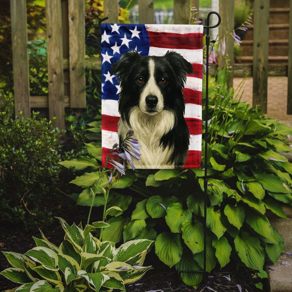 Garden Flag featuring breed specific Border Collie artwork. Enhance the beauty of your garden, patio, or yard with Caroline's Treasures Decorative Garden Flag, proudly made in the USA. Crafted from two pieces of thick, double-sided polyester fabric, this 2-ply garden flag is designed to withstand various weather conditions, making it water-resistant and weatherproof. Featuring correctly readable words on both sides, this garden flag offers a delightful visual experience from any angle. With its heavier weight, it stands out among other garden flags, ensuring stability and durability even in wind, rain, and snow. Measuring approximately 11 1/4 inches by 15 1/2 inches, this flag allows you to personalize your outdoor decor. It comes with a 1 1/2-inch sleeve sewn in, allowing easy attachment to any standard garden flag stand or garden size porch hanger (sold separately). Make a statement in your outdoor space with Caroline's Treasures Decorative Garden Flag, a vibrant and high-quality flag that adds color and personality to your surroundings. Proudly made in the USA, it's a symbol of quality craftsmanship and attention to detail.