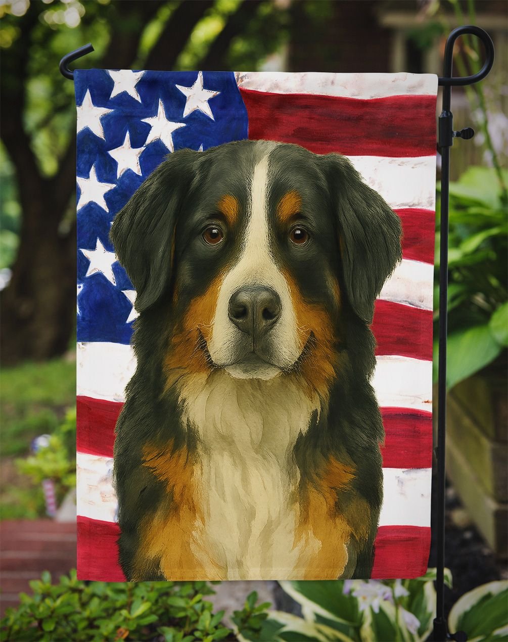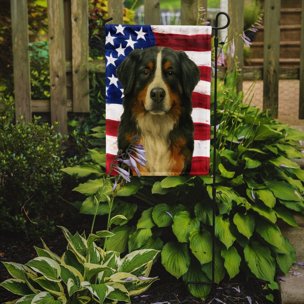 Garden Flag featuring breed specific Bernese Mountain Dog artwork. Enhance the beauty of your garden, patio, or yard with Caroline's Treasures Decorative Garden Flag, proudly made in the USA. Crafted from two pieces of thick, double-sided polyester fabric, this 2-ply garden flag is designed to withstand various weather conditions, making it water-resistant and weatherproof. Featuring correctly readable words on both sides, this garden flag offers a delightful visual experience from any angle. With its heavier weight, it stands out among other garden flags, ensuring stability and durability even in wind, rain, and snow. Measuring approximately 11 1/4 inches by 15 1/2 inches, this flag allows you to personalize your outdoor decor. It comes with a 1 1/2-inch sleeve sewn in, allowing easy attachment to any standard garden flag stand or garden size porch hanger (sold separately). Make a statement in your outdoor space with Caroline's Treasures Decorative Garden Flag, a vibrant and high-quality flag that adds color and personality to your surroundings. Proudly made in the USA, it's a symbol of quality craftsmanship and attention to detail.