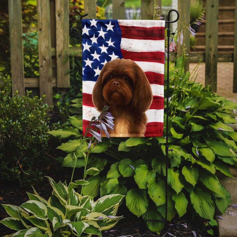 Liver Shih Tzu American Flag Garden Flag Mailbox Flag Decorative Yard Flag Banner Outside Patio Artwork Yard Flower Beds, Garden Size, Multicolor