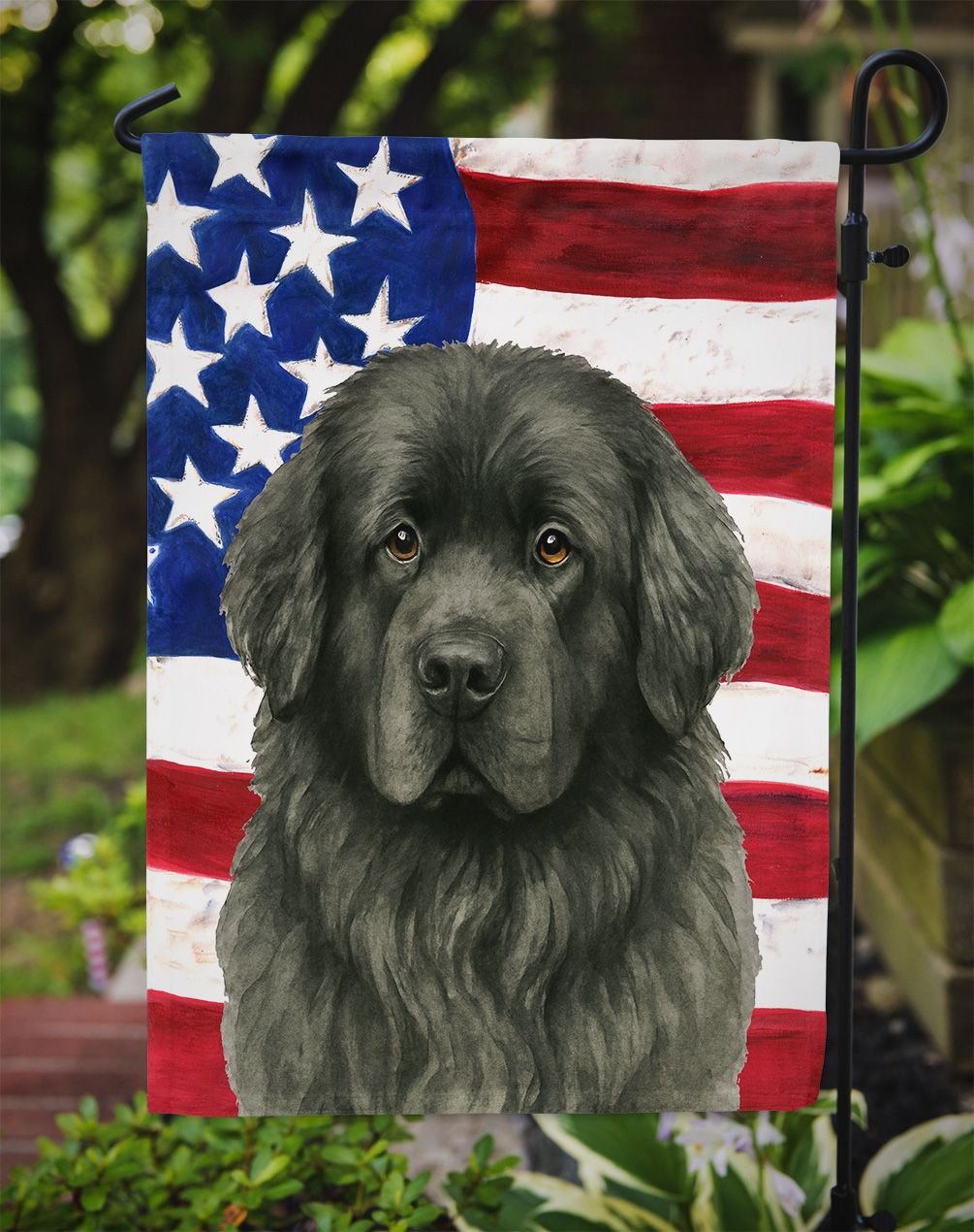Garden Flag featuring breed specific Newfoundland artwork. Enhance the beauty of your garden, patio, or yard with Caroline's Treasures Decorative Garden Flag, proudly made in the USA. Crafted from two pieces of thick, double-sided polyester fabric, this 2-ply garden flag is designed to withstand various weather conditions, making it water-resistant and weatherproof. Featuring correctly readable words on both sides, this garden flag offers a delightful visual experience from any angle. With its heavier weight, it stands out among other garden flags, ensuring stability and durability even in wind, rain, and snow. Measuring approximately 11 1/4 inches by 15 1/2 inches, this flag allows you to personalize your outdoor decor. It comes with a 1 1/2-inch sleeve sewn in, allowing easy attachment to any standard garden flag stand or garden size porch hanger (sold separately). Make a statement in your outdoor space with Caroline's Treasures Decorative Garden Flag, a vibrant and high-quality flag that adds color and personality to your surroundings. Proudly made in the USA, it's a symbol of quality craftsmanship and attention to detail.