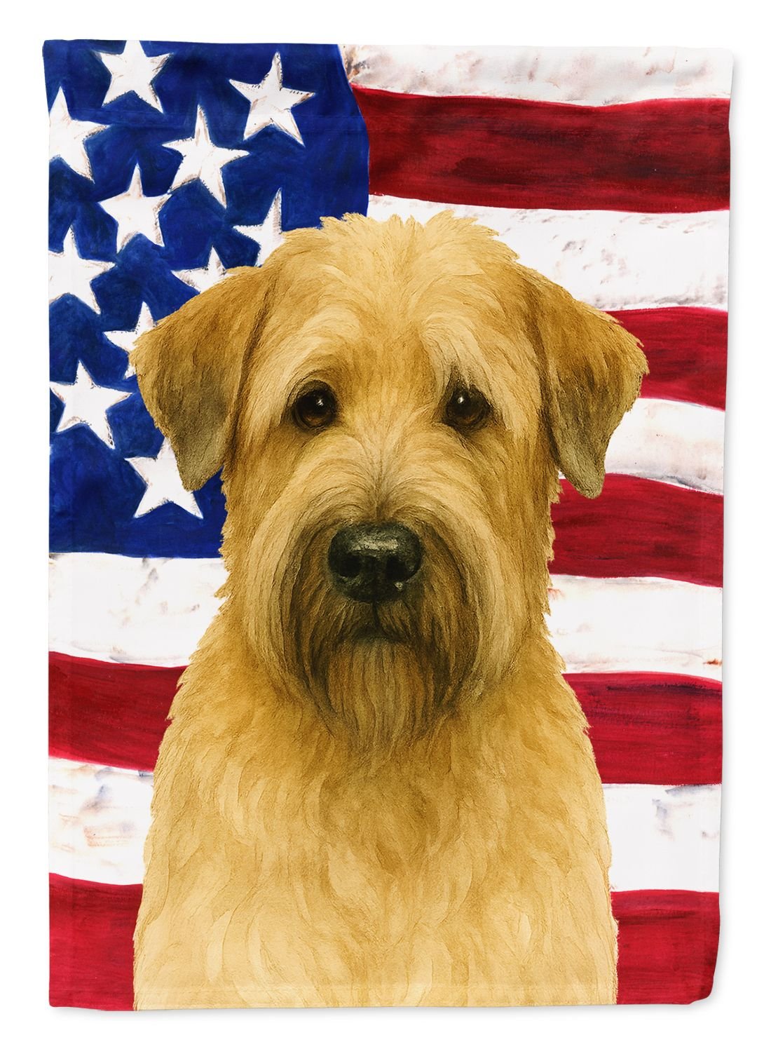 Garden Flag featuring breed specific Soft Coated Wheaten Terrier artwork. Enhance the beauty of your garden, patio, or yard with Caroline's Treasures Decorative Garden Flag, proudly made in the USA. Crafted from two pieces of thick, double-sided polyester fabric, this 2-ply garden flag is designed to withstand various weather conditions, making it water-resistant and weatherproof. Featuring correctly readable words on both sides, this garden flag offers a delightful visual experience from any angle. With its heavier weight, it stands out among other garden flags, ensuring stability and durability even in wind, rain, and snow. Measuring approximately 11 1/4 inches by 15 1/2 inches, this flag allows you to personalize your outdoor decor. It comes with a 1 1/2-inch sleeve sewn in, allowing easy attachment to any standard garden flag stand or garden size porch hanger (sold separately). Make a statement in your outdoor space with Caroline's Treasures Decorative Garden Flag, a vibrant and high-quality flag that adds color and personality to your surroundings. Proudly made in the USA, it's a symbol of quality craftsmanship and attention to detail.