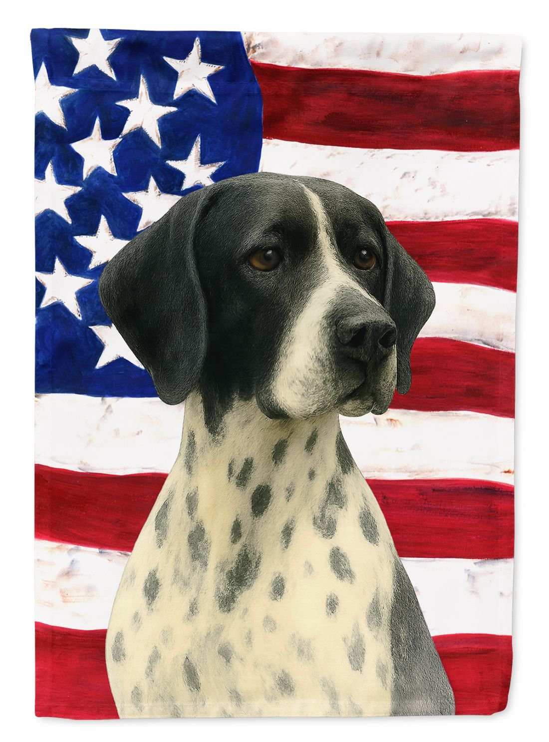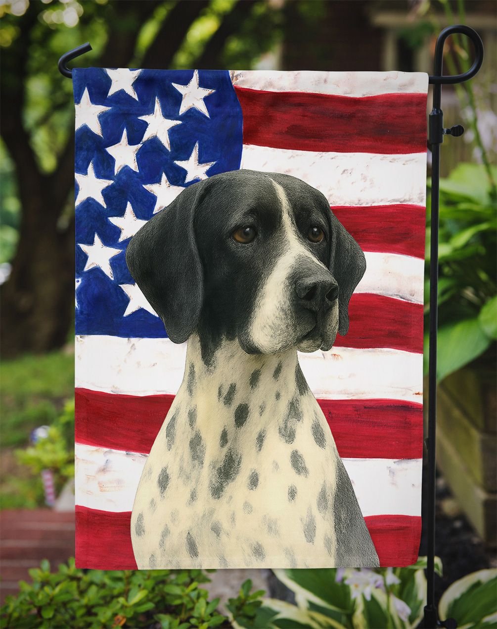 Garden Flag featuring breed specific Pointer artwork. Enhance the beauty of your garden, patio, or yard with Caroline's Treasures Decorative Garden Flag, proudly made in the USA. Crafted from two pieces of thick, double-sided polyester fabric, this 2-ply garden flag is designed to withstand various weather conditions, making it water-resistant and weatherproof. Featuring correctly readable words on both sides, this garden flag offers a delightful visual experience from any angle. With its heavier weight, it stands out among other garden flags, ensuring stability and durability even in wind, rain, and snow. Measuring approximately 11 1/4 inches by 15 1/2 inches, this flag allows you to personalize your outdoor decor. It comes with a 1 1/2-inch sleeve sewn in, allowing easy attachment to any standard garden flag stand or garden size porch hanger (sold separately). Make a statement in your outdoor space with Caroline's Treasures Decorative Garden Flag, a vibrant and high-quality flag that adds color and personality to your surroundings. Proudly made in the USA, it's a symbol of quality craftsmanship and attention to detail.
