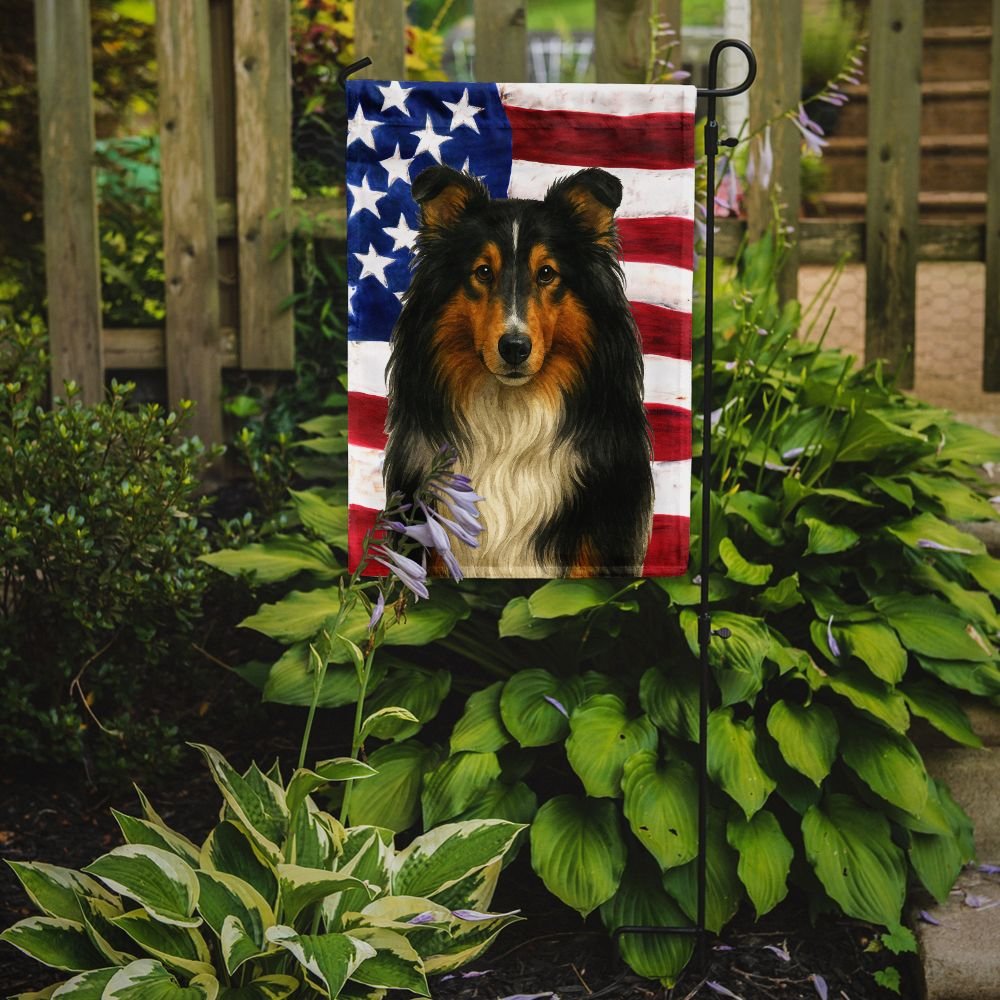 Garden Flag featuring breed specific Collie artwork. Enhance the beauty of your garden, patio, or yard with Caroline's Treasures Decorative Garden Flag, proudly made in the USA. Crafted from two pieces of thick, double-sided polyester fabric, this 2-ply garden flag is designed to withstand various weather conditions, making it water-resistant and weatherproof. Featuring correctly readable words on both sides, this garden flag offers a delightful visual experience from any angle. With its heavier weight, it stands out among other garden flags, ensuring stability and durability even in wind, rain, and snow. Measuring approximately 11 1/4 inches by 15 1/2 inches, this flag allows you to personalize your outdoor decor. It comes with a 1 1/2-inch sleeve sewn in, allowing easy attachment to any standard garden flag stand or garden size porch hanger (sold separately). Make a statement in your outdoor space with Caroline's Treasures Decorative Garden Flag, a vibrant and high-quality flag that adds color and personality to your surroundings. Proudly made in the USA, it's a symbol of quality craftsmanship and attention to detail.