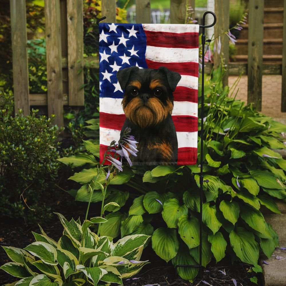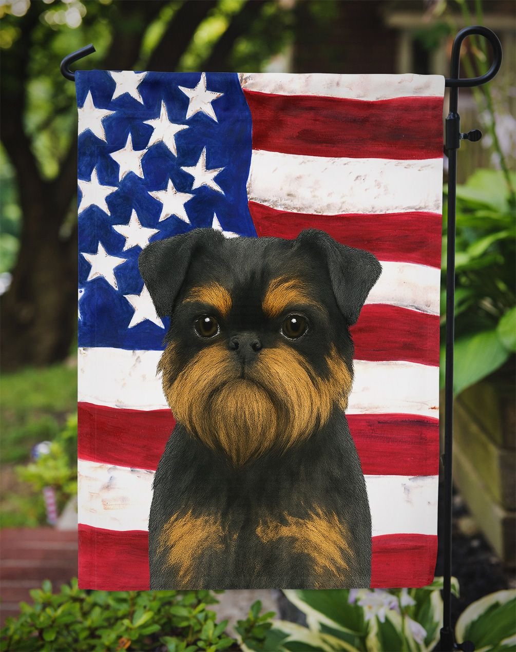 Garden Flag featuring breed specific Brussels Griffon artwork. Enhance the beauty of your garden, patio, or yard with Caroline's Treasures Decorative Garden Flag, proudly made in the USA. Crafted from two pieces of thick, double-sided polyester fabric, this 2-ply garden flag is designed to withstand various weather conditions, making it water-resistant and weatherproof. Featuring correctly readable words on both sides, this garden flag offers a delightful visual experience from any angle. With its heavier weight, it stands out among other garden flags, ensuring stability and durability even in wind, rain, and snow. Measuring approximately 11 1/4 inches by 15 1/2 inches, this flag allows you to personalize your outdoor decor. It comes with a 1 1/2-inch sleeve sewn in, allowing easy attachment to any standard garden flag stand or garden size porch hanger (sold separately). Make a statement in your outdoor space with Caroline's Treasures Decorative Garden Flag, a vibrant and high-quality flag that adds color and personality to your surroundings. Proudly made in the USA, it's a symbol of quality craftsmanship and attention to detail.