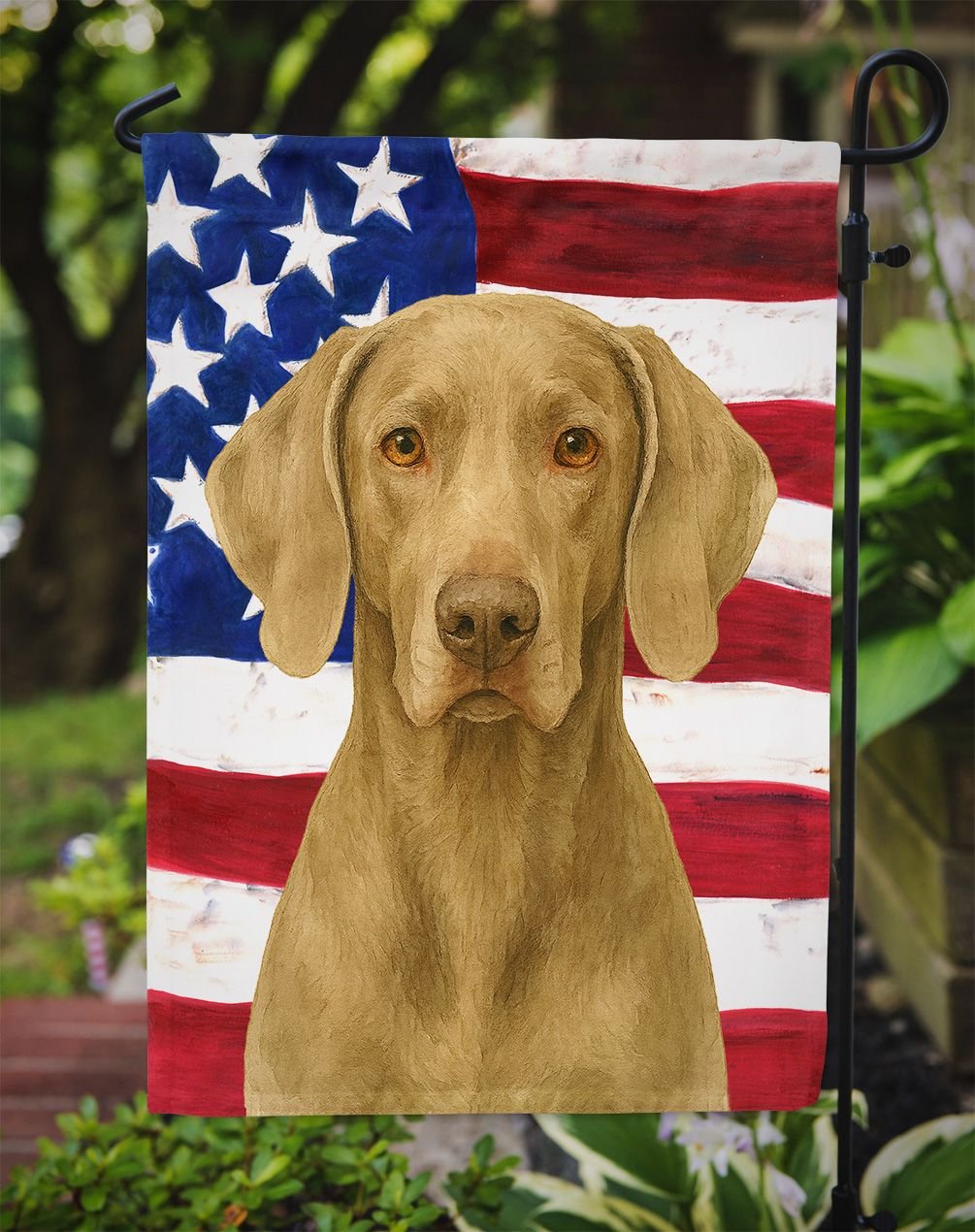 Garden Flag featuring breed specific Weimaraner artwork. Enhance the beauty of your garden, patio, or yard with Caroline's Treasures Decorative Garden Flag, proudly made in the USA. Crafted from two pieces of thick, double-sided polyester fabric, this 2-ply garden flag is designed to withstand various weather conditions, making it water-resistant and weatherproof. Featuring correctly readable words on both sides, this garden flag offers a delightful visual experience from any angle. With its heavier weight, it stands out among other garden flags, ensuring stability and durability even in wind, rain, and snow. Measuring approximately 11 1/4 inches by 15 1/2 inches, this flag allows you to personalize your outdoor decor. It comes with a 1 1/2-inch sleeve sewn in, allowing easy attachment to any standard garden flag stand or garden size porch hanger (sold separately). Make a statement in your outdoor space with Caroline's Treasures Decorative Garden Flag, a vibrant and high-quality flag that adds color and personality to your surroundings. Proudly made in the USA, it's a symbol of quality craftsmanship and attention to detail.