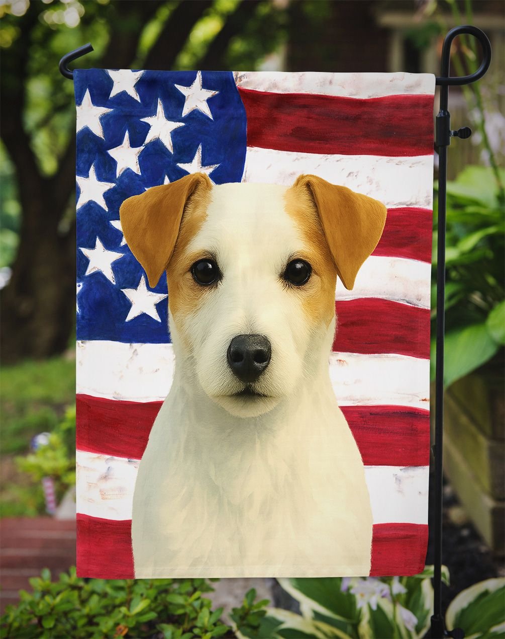 Garden Flag featuring breed specific Jack Russell Terrier artwork. Enhance the beauty of your garden, patio, or yard with Caroline's Treasures Decorative Garden Flag, proudly made in the USA. Crafted from two pieces of thick, double-sided polyester fabric, this 2-ply garden flag is designed to withstand various weather conditions, making it water-resistant and weatherproof. Featuring correctly readable words on both sides, this garden flag offers a delightful visual experience from any angle. With its heavier weight, it stands out among other garden flags, ensuring stability and durability even in wind, rain, and snow. Measuring approximately 11 1/4 inches by 15 1/2 inches, this flag allows you to personalize your outdoor decor. It comes with a 1 1/2-inch sleeve sewn in, allowing easy attachment to any standard garden flag stand or garden size porch hanger (sold separately). Make a statement in your outdoor space with Caroline's Treasures Decorative Garden Flag, a vibrant and high-quality flag that adds color and personality to your surroundings. Proudly made in the USA, it's a symbol of quality craftsmanship and attention to detail.