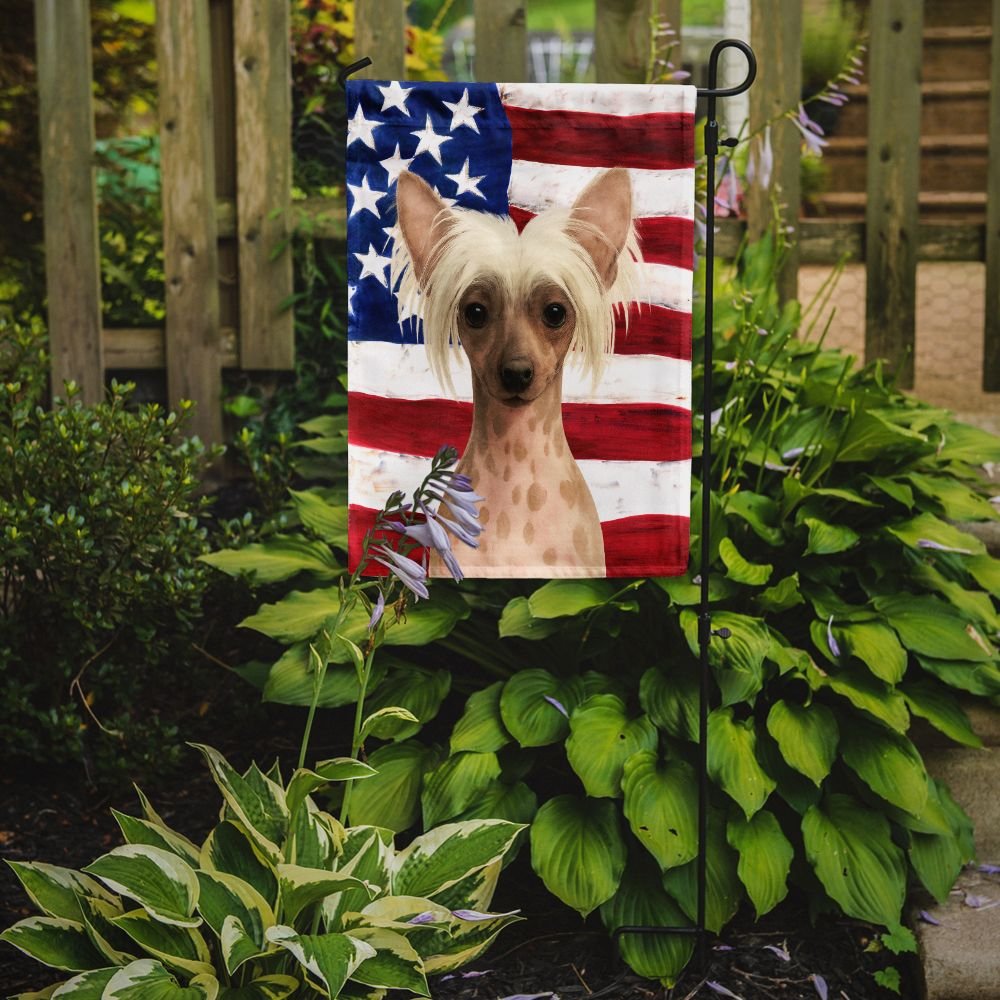 Garden Flag featuring breed specific Chinese Crested artwork. Enhance the beauty of your garden, patio, or yard with Caroline's Treasures Decorative Garden Flag, proudly made in the USA. Crafted from two pieces of thick, double-sided polyester fabric, this 2-ply garden flag is designed to withstand various weather conditions, making it water-resistant and weatherproof. Featuring correctly readable words on both sides, this garden flag offers a delightful visual experience from any angle. With its heavier weight, it stands out among other garden flags, ensuring stability and durability even in wind, rain, and snow. Measuring approximately 11 1/4 inches by 15 1/2 inches, this flag allows you to personalize your outdoor decor. It comes with a 1 1/2-inch sleeve sewn in, allowing easy attachment to any standard garden flag stand or garden size porch hanger (sold separately). Make a statement in your outdoor space with Caroline's Treasures Decorative Garden Flag, a vibrant and high-quality flag that adds color and personality to your surroundings. Proudly made in the USA, it's a symbol of quality craftsmanship and attention to detail.