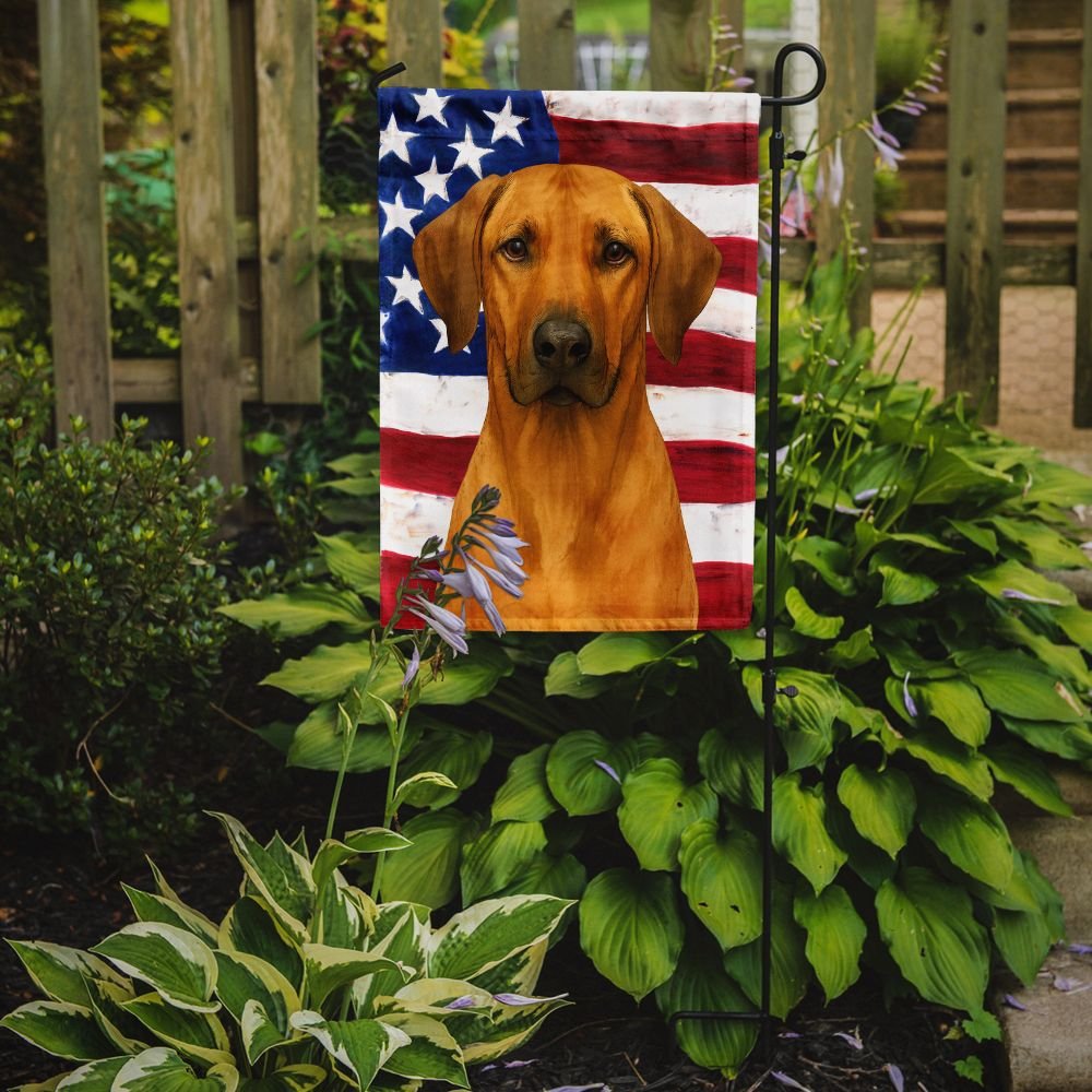 Garden Flag featuring breed specific Rhodesian Ridgeback artwork. Enhance the beauty of your garden, patio, or yard with Caroline's Treasures Decorative Garden Flag, proudly made in the USA. Crafted from two pieces of thick, double-sided polyester fabric, this 2-ply garden flag is designed to withstand various weather conditions, making it water-resistant and weatherproof. Featuring correctly readable words on both sides, this garden flag offers a delightful visual experience from any angle. With its heavier weight, it stands out among other garden flags, ensuring stability and durability even in wind, rain, and snow. Measuring approximately 11 1/4 inches by 15 1/2 inches, this flag allows you to personalize your outdoor decor. It comes with a 1 1/2-inch sleeve sewn in, allowing easy attachment to any standard garden flag stand or garden size porch hanger (sold separately). Make a statement in your outdoor space with Caroline's Treasures Decorative Garden Flag, a vibrant and high-quality flag that adds color and personality to your surroundings. Proudly made in the USA, it's a symbol of quality craftsmanship and attention to detail.
