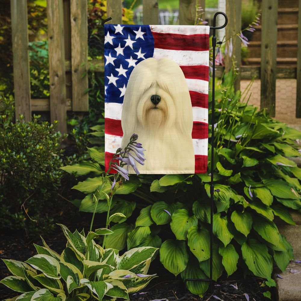 Garden Flag featuring breed specific Lhasa Apso artwork. Enhance the beauty of your garden, patio, or yard with Caroline's Treasures Decorative Garden Flag, proudly made in the USA. Crafted from two pieces of thick, double-sided polyester fabric, this 2-ply garden flag is designed to withstand various weather conditions, making it water-resistant and weatherproof. Featuring correctly readable words on both sides, this garden flag offers a delightful visual experience from any angle. With its heavier weight, it stands out among other garden flags, ensuring stability and durability even in wind, rain, and snow. Measuring approximately 11 1/4 inches by 15 1/2 inches, this flag allows you to personalize your outdoor decor. It comes with a 1 1/2-inch sleeve sewn in, allowing easy attachment to any standard garden flag stand or garden size porch hanger (sold separately). Make a statement in your outdoor space with Caroline's Treasures Decorative Garden Flag, a vibrant and high-quality flag that adds color and personality to your surroundings. Proudly made in the USA, it's a symbol of quality craftsmanship and attention to detail.