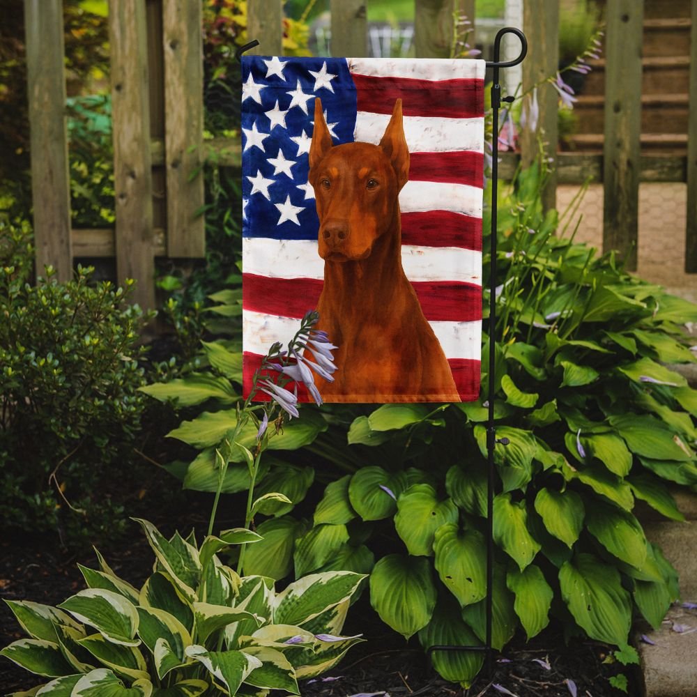 Garden Flag featuring breed specific Doberman Pinscher artwork. Enhance the beauty of your garden, patio, or yard with Caroline's Treasures Decorative Garden Flag, proudly made in the USA. Crafted from two pieces of thick, double-sided polyester fabric, this 2-ply garden flag is designed to withstand various weather conditions, making it water-resistant and weatherproof. Featuring correctly readable words on both sides, this garden flag offers a delightful visual experience from any angle. With its heavier weight, it stands out among other garden flags, ensuring stability and durability even in wind, rain, and snow. Measuring approximately 11 1/4 inches by 15 1/2 inches, this flag allows you to personalize your outdoor decor. It comes with a 1 1/2-inch sleeve sewn in, allowing easy attachment to any standard garden flag stand or garden size porch hanger (sold separately). Make a statement in your outdoor space with Caroline's Treasures Decorative Garden Flag, a vibrant and high-quality flag that adds color and personality to your surroundings. Proudly made in the USA, it's a symbol of quality craftsmanship and attention to detail.