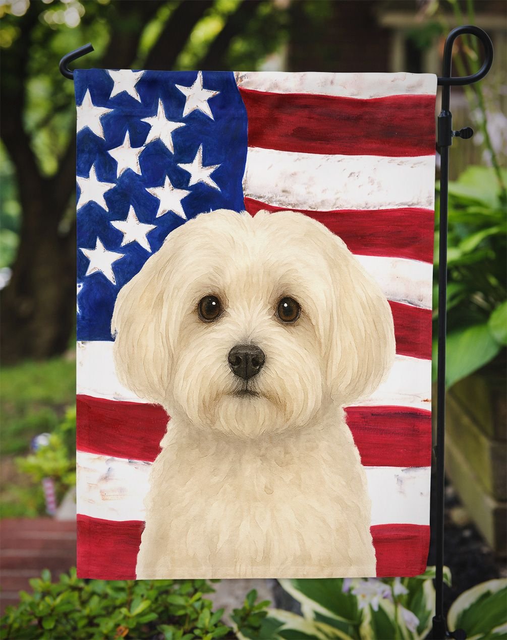 Garden Flag featuring breed specific Havanese artwork. Enhance the beauty of your garden, patio, or yard with Caroline's Treasures Decorative Garden Flag, proudly made in the USA. Crafted from two pieces of thick, double-sided polyester fabric, this 2-ply garden flag is designed to withstand various weather conditions, making it water-resistant and weatherproof. Featuring correctly readable words on both sides, this garden flag offers a delightful visual experience from any angle. With its heavier weight, it stands out among other garden flags, ensuring stability and durability even in wind, rain, and snow. Measuring approximately 11 1/4 inches by 15 1/2 inches, this flag allows you to personalize your outdoor decor. It comes with a 1 1/2-inch sleeve sewn in, allowing easy attachment to any standard garden flag stand or garden size porch hanger (sold separately). Make a statement in your outdoor space with Caroline's Treasures Decorative Garden Flag, a vibrant and high-quality flag that adds color and personality to your surroundings. Proudly made in the USA, it's a symbol of quality craftsmanship and attention to detail.