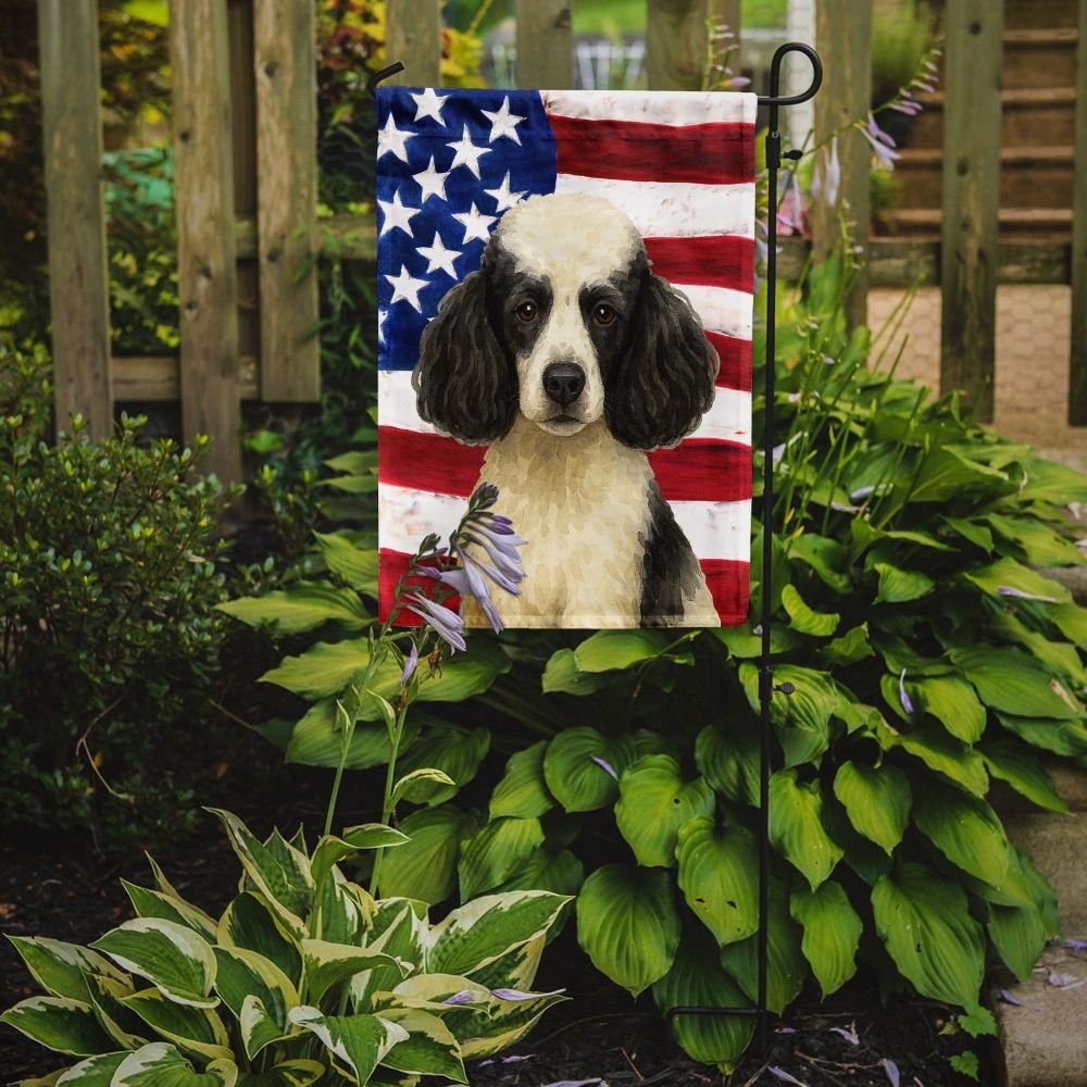 Garden Flag featuring breed specific Poodle artwork. Enhance the beauty of your garden, patio, or yard with Caroline's Treasures Decorative Garden Flag, proudly made in the USA. Crafted from two pieces of thick, double-sided polyester fabric, this 2-ply garden flag is designed to withstand various weather conditions, making it water-resistant and weatherproof. Featuring correctly readable words on both sides, this garden flag offers a delightful visual experience from any angle. With its heavier weight, it stands out among other garden flags, ensuring stability and durability even in wind, rain, and snow. Measuring approximately 11 1/4 inches by 15 1/2 inches, this flag allows you to personalize your outdoor decor. It comes with a 1 1/2-inch sleeve sewn in, allowing easy attachment to any standard garden flag stand or garden size porch hanger (sold separately). Make a statement in your outdoor space with Caroline's Treasures Decorative Garden Flag, a vibrant and high-quality flag that adds color and personality to your surroundings. Proudly made in the USA, it's a symbol of quality craftsmanship and attention to detail.