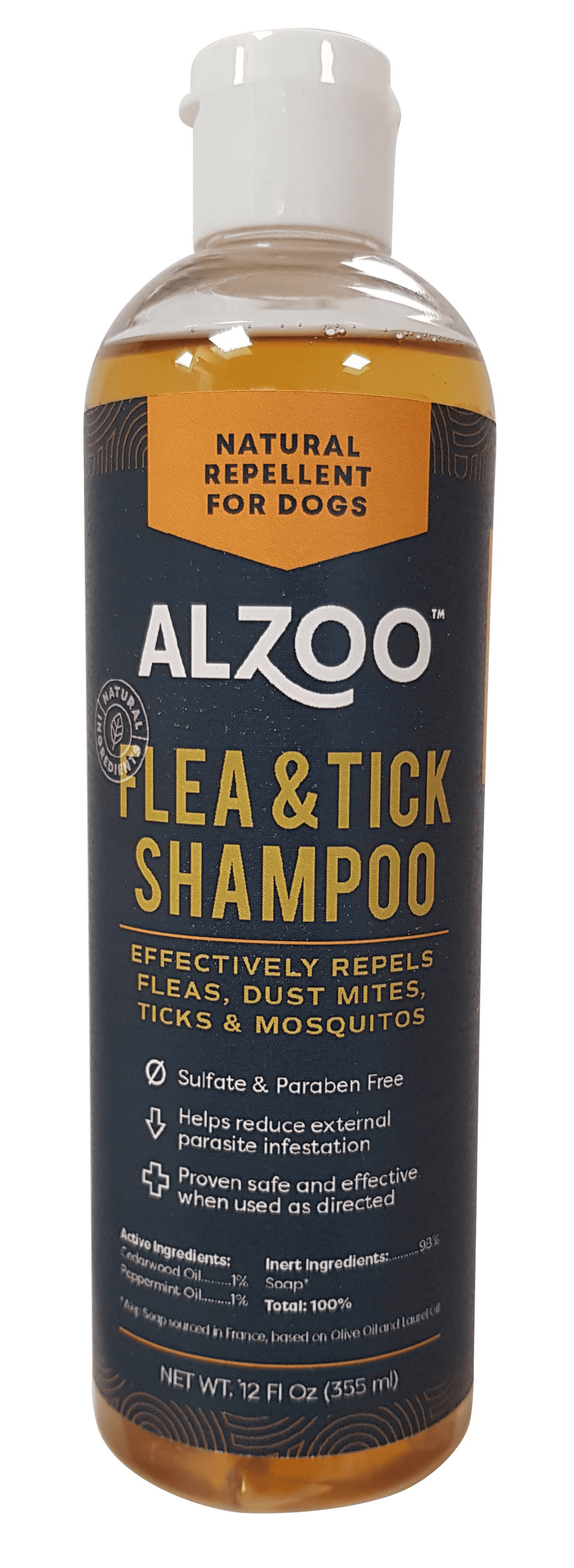 ALZOO Flea & Tick Shampoo is made with Plant-Based Ingredients with Essential Oils and has proven to effectively repel fleas, ticks, and mosquitos.