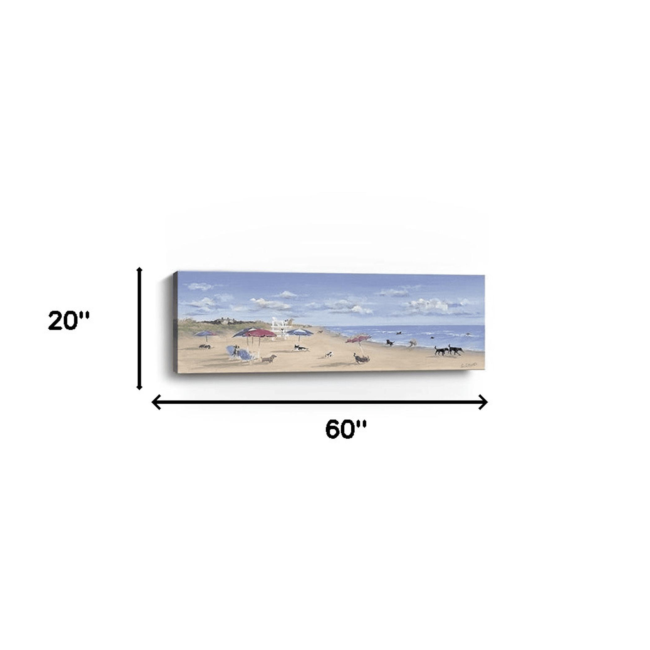 Bring some sizzle to your space with this eye-catching 60 inches x 20 inches dogs rule the beach canvas wall art. This print is a visual artistic expression that allows you to decorate your space in style. Reproduced for you on canvas, this hanging decorative accent will be a trendy and fashionable way to dress your walls. Hang on your wall to add some up to date fashion and decoration. Utilize this opportunity to create a focal point in the room with this fabulous wall decor option. 60 inches H x 20 inches W x 1.25 inches D