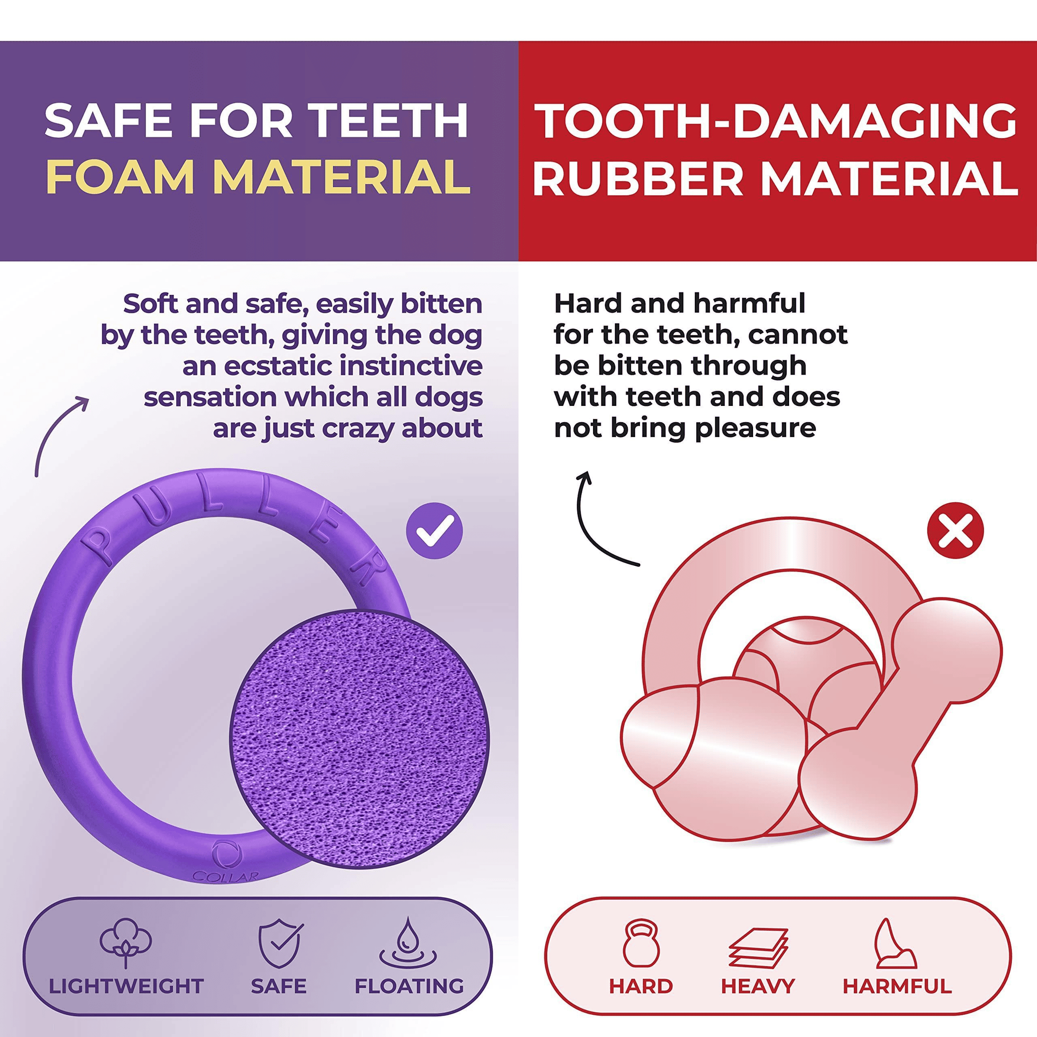 Multifunctional Dog Toy - PULLER is more than just a dog ring toy. Use it to fetch, tug of war and water games. It is a great alternative to dog balls, floating dog toys, frisbee for dogs.
