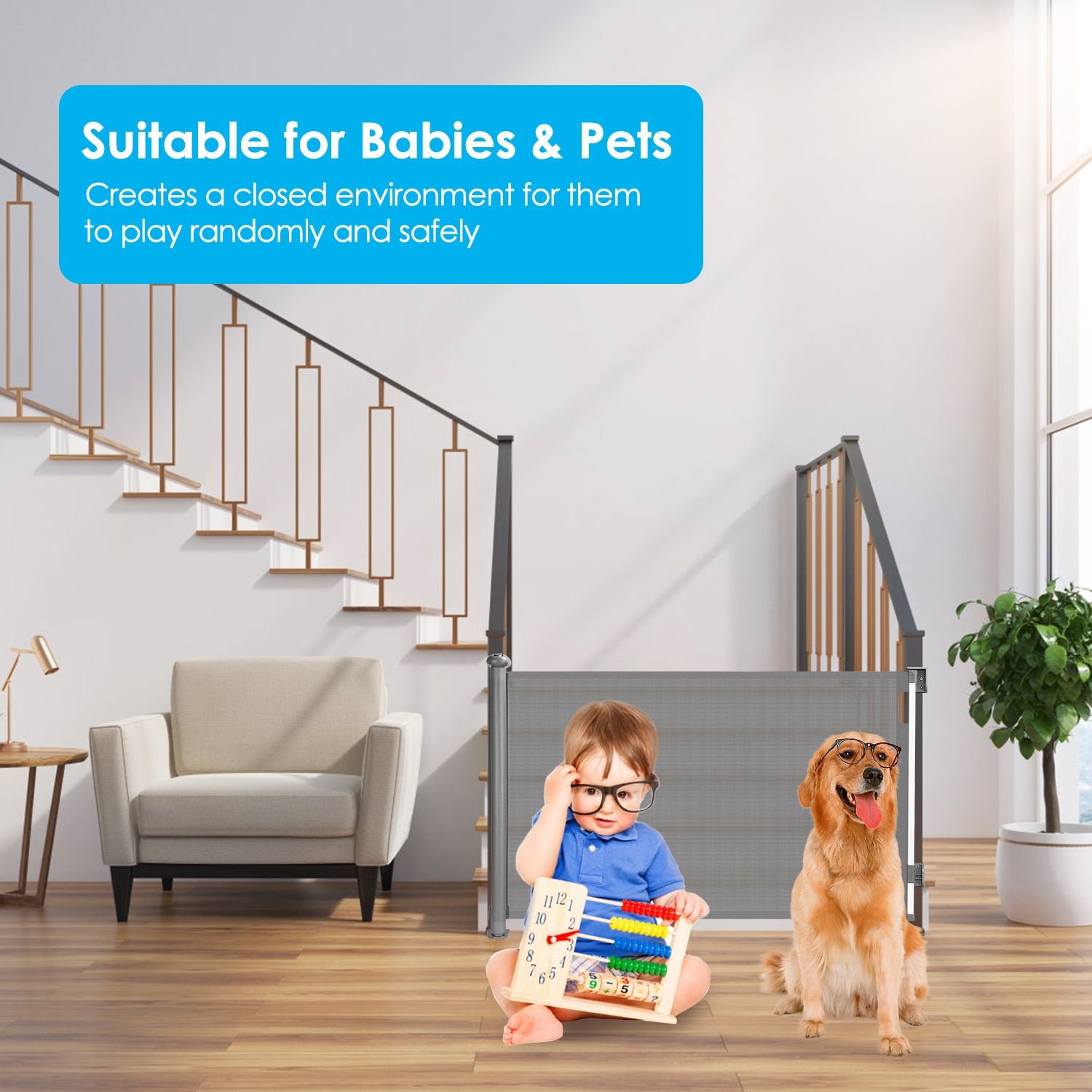 *Durable Mesh*:Lightweight and durable. With strong and soft mesh,this safety gate is perfect for,blocking access to dangerous areas and stairs and avoiding any injury if kids fall in the door. Besides,the mesh is scratch-resistant and can be partially seen through. You can check baby status anytime when you are busy in doing housework.